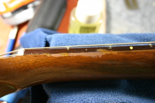 木の粉で埋めて瞬間接着剤をしみ込ませ、固まった後平らにします.