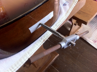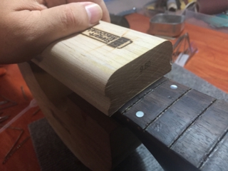 ネックの円周を計り、同じ円周のブロックを使ってサンディング。