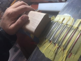 フレットをベンダーを使って曲げていきます。