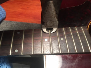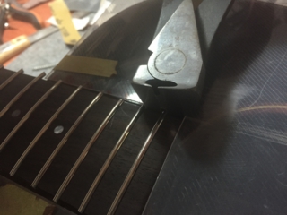 平たくなったフレットを丸くしてやります。
