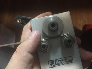 専用リーマで少しずつ広げていきます.電動ドリル等でやってしまうとエンドブロックが割れてしまいますからね.