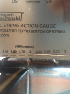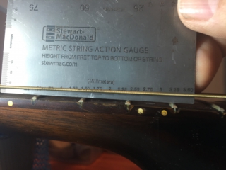 6弦側約3mm。1弦側約2.75mm。ちょっと高い目ですね。