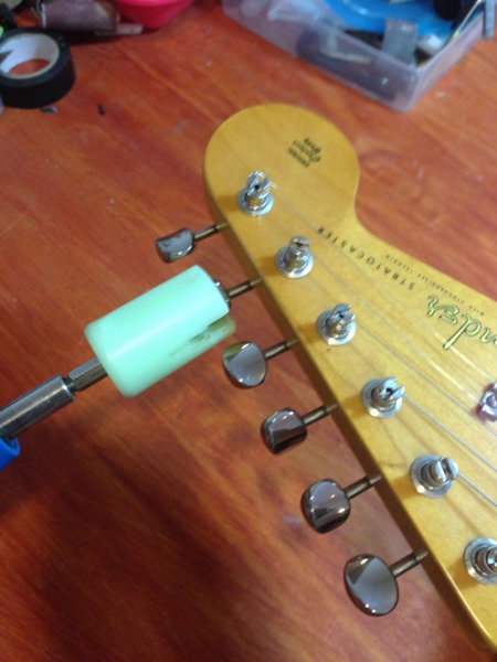 今回はバネを2本に減らし、弦高、テンション、オクターブを時間をかけて慎重に調整していきます。
