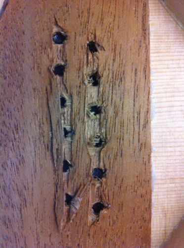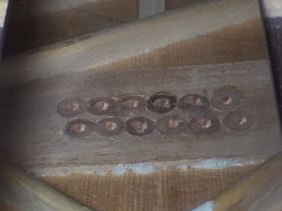 ブリジプレートにあて木を当ててみたら、変なのが覗いてました。