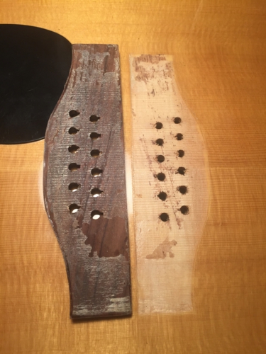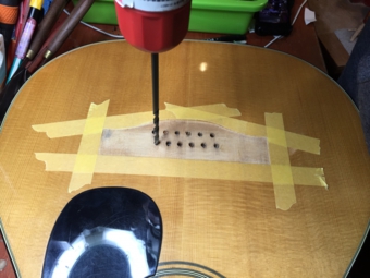 ブリッジ再接着、ブリッジプレートプラグ補修、フレットの擦り合わせ、ネック調整、弦高調整、オクターブ調整を含む弦周りの施工でした。