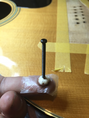 プラグにネジを仮刺しして、タイトボンドをつけて裏から貼り付けます。