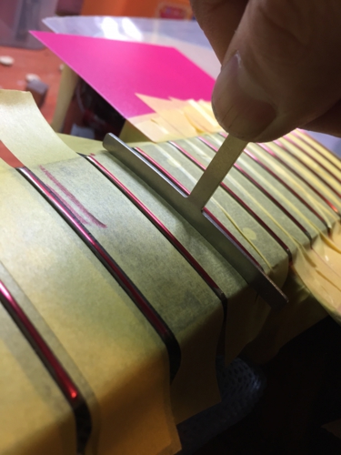 指板の円周と同じ円周のブロックで擦り合わせ。