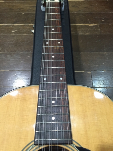 70年代の国産ギター。珍しいシリーズで小型マーチンのコピーシリーズです。特に12弦モデルは初めて見ました。
